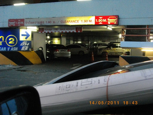 ห้างเซ็นทรัลปิ่นเกล้าที่เคยเข้าไปส่งแบบก็เข้าไม่ได้แล้ว จำกัดความสูง 1.90ม. รถเราปาเข้าไป 1.95ม. วัดจากพื้นถึงยอดปีกหลังคา ต้องจอดข้างนอกแล้วเดินอย่างไกล...( โส..น้า...น่า....อีกครั้ง )