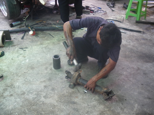 นอนดูอยู่ใต้ท้องรถมา 2 วัน คิดหาวิธีจะเปลี่ยนตุ๊กตาด้วยตัวเอง การถอดเพลาดูแล้วไม่ยาก แต่ว่าจะถอดยอยออกได้อย่างไร คิดเท่าไรก็หาจุดถอดไม่ได้เลยต้องพึ่งช่าง