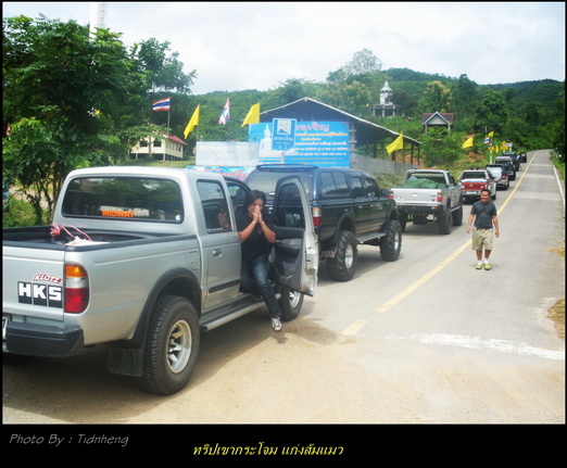 สามแยกเลี้ยวขวาก่อนขึ้นเขากระโจมก็ได้พบกับน้าจิ้มกับน้อง สาวหล่อทั้งคู่ ขับ8ช่อง4x4เดิมๆสีบรอนซ์เงิน ข่าวว่าเพิ่งได้มาใหม่เอามาทดสอบแต่ความร้อนขึ้น เลยจอดฝากเจ้าพ่อเขาขาดไว้หน้าศาล