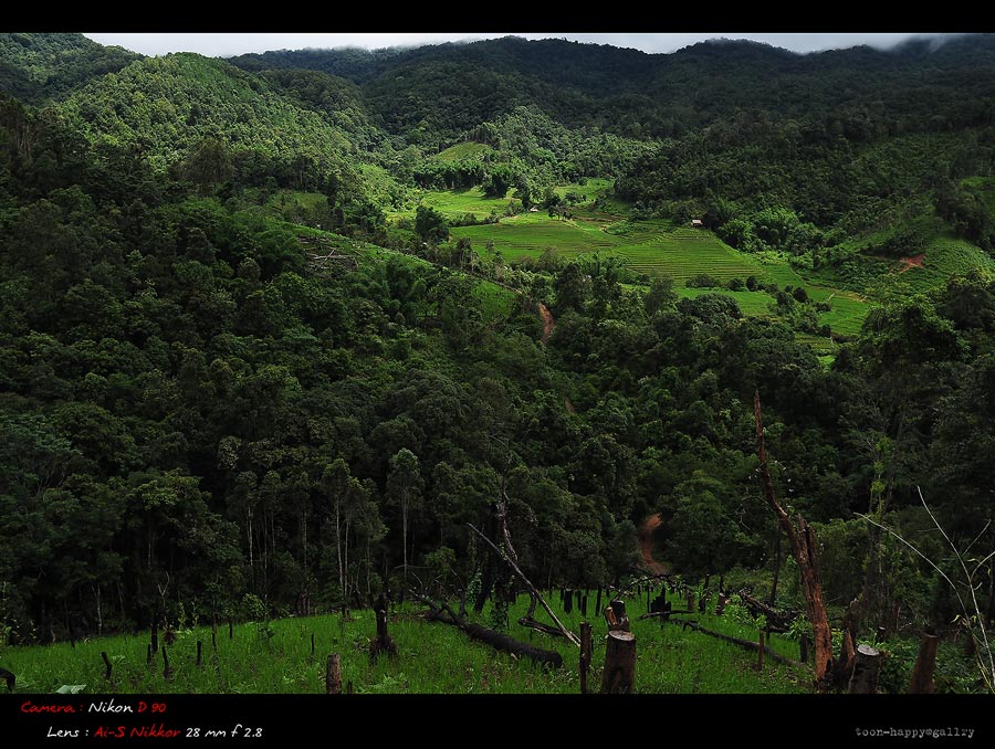 พื้นที่ที่สูงชันมากจนทำนาขั้นบันไดไม่ได้ ก็ต้องทำเป็นไร่ข้าว