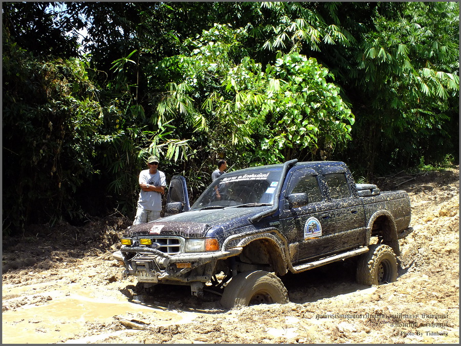 น้ากรีนำหน้า น้าจานทองต่อมาและผมตามหลัง แถกันไปเรื่อยๆจนถึงบ่อโคลนก่อนที่จะถึงทางคอนกรีต น้ากรีจอดแอบขวามือ ด้วยสปิริตแรงกล้าของน้าจานทองอาสาลงไปวัดความลึกของบ่อก่อนที่จะให้กลุ่มผ่านไป