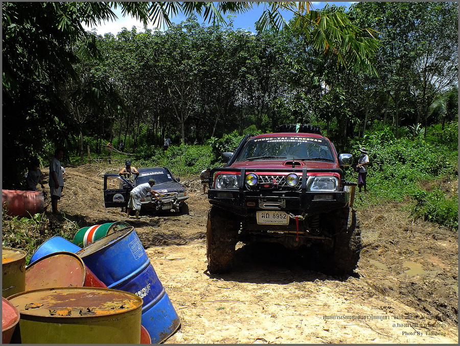 ค่อยๆตะกายขึ้นสวนยางอ้อมไปลงข้างหน้า ผมเห็นดังนั้นก็รีบตามทันทีพร้อมทั้งเพื่อนที่ตามหลังมาซึ่งส่วนใหญ่ก็เป็นปีกนกทั้งนั้น เฮียณรงค์คานแข็งยาง37" กระโจนข้ามผ่านบ่อไปได้แบบง่ายๆ จะข้ามไปกลับอีก10รอบก็ยังไหว