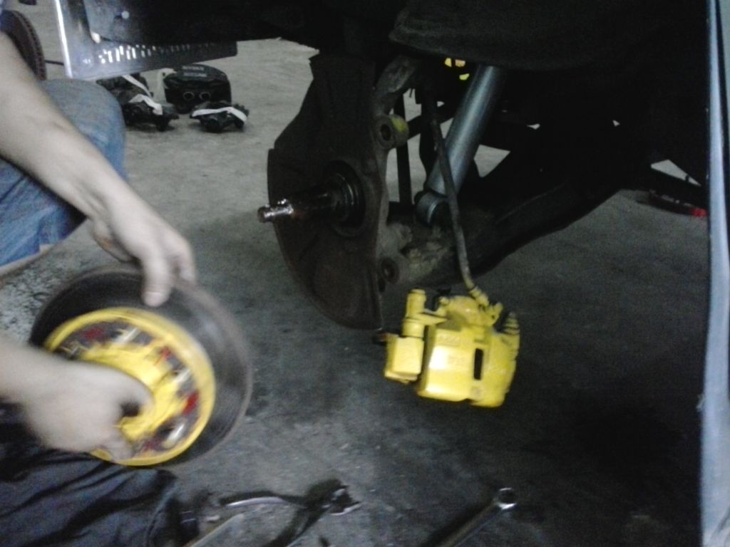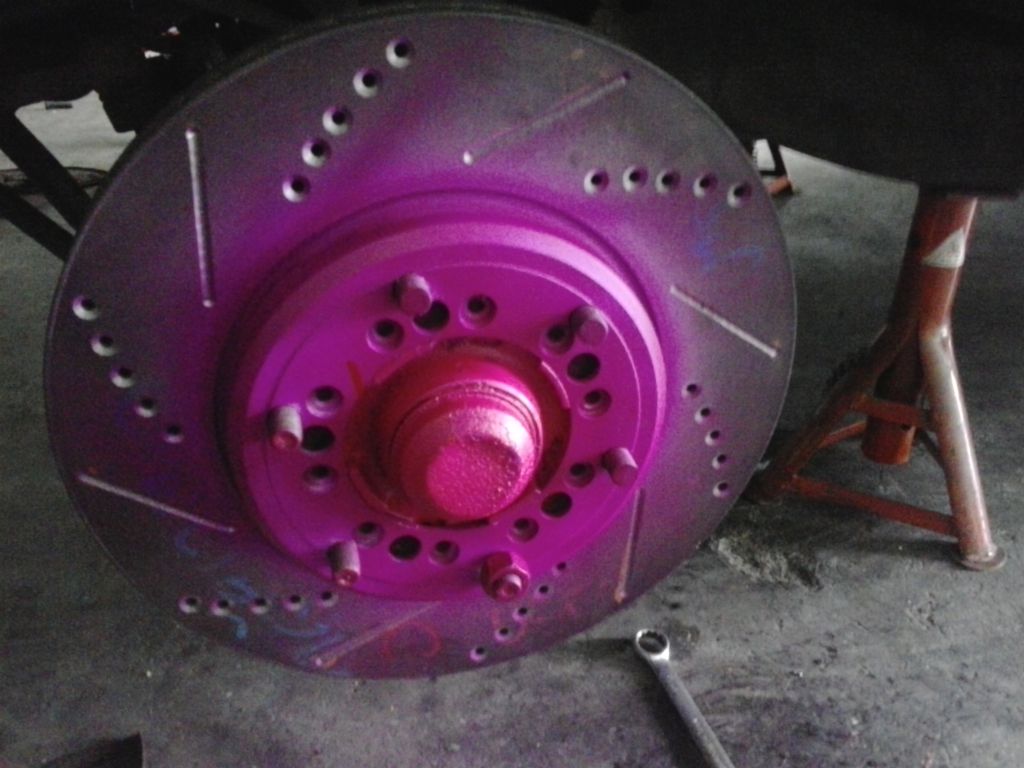 การแปลงต้องทำสองอย่างหลักๆคือทำขายึดเพื่อติดตั้งคาลิบเปอร์ และ2เจาะจานเบรกเป็น6รูให้เหมือนดุมของเรา