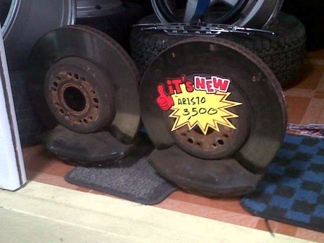 ต้องออกตัวก่อนนะคับว่า ผมยังไม่ได้แปลงเบรค ณ ตอนนี้ ทำแค่ สายถักเท่านั้น ถ้ากับยาง31" ผมถือว่า ดีแล้ว แต่กับยาง35" อีกชุดซึ่งนานๆเอามาลงพื้น ถือว่าเบรคที่ผมทำมารับไม่ค่อยพอ ต้องกะระยะเบรคไว้พอควร ก็เลยมองๆเรื่องแปลงคาริเปอร์ไว้เหมือนกัน สอบถามจากเพื่อนๆ เขาก็แนะนำ aristo กัน เพราะราคาถูก หาง่าย ร้านรับแปลงมีของในstock ซึ่งตอนนี้ผมคิดว่า กะจะใช้จานเดิม แค่เปลียนคาริเปอร์เท่านั้น ส่วนจาน ยังไม่เปลียนเนื่องจากเหตุผล เรื่องขนาดกระทะ รถผมใช้แค่15" ถ้าเอาจาน 315 มาลง ล้อ15 คงใช้ไม่ได้ งบบานปลาย