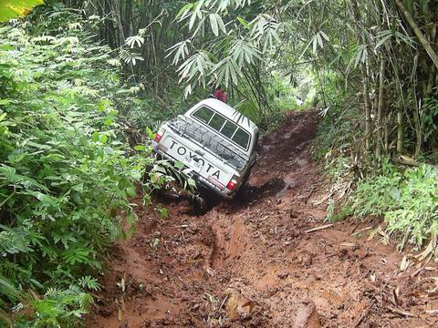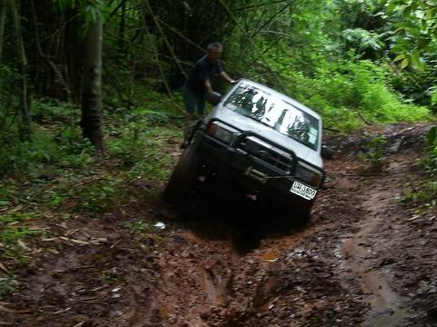 ต้องรออยู่ตีนเนิน แล้วกระโดดขึ้นมา ทางเป็นหลุมดักล้อตลอด