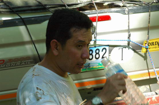 หลังจากผมพ้นมาแล้ว ก็นั่งฟังข่าวจากทาง ว.ด้วยความเป็นห่วง เพราะได้ยินว่ามีคนเป็นตระคริวจนกระเด็นตกจากท้ายรถพี่พงศ์ ผมเลยแจ้งไปทาง ว.ว่า ให้นำมาชัณสูตร เอ้ย..รักษาข้างนอก ภาพนี้เป็นการโชว์ ทีมเวิรค์ ของco-driverของผมทั้ง3คน เบอร์หนึ่งยืนขำ เบอร์2ร้องโอดโอย เบอร์3 ซึ่งจริงๆทริปนี้ มาเป็นพ่อครัวแต่ด้วยความเก๋า จึงเป็นหมอด้วย