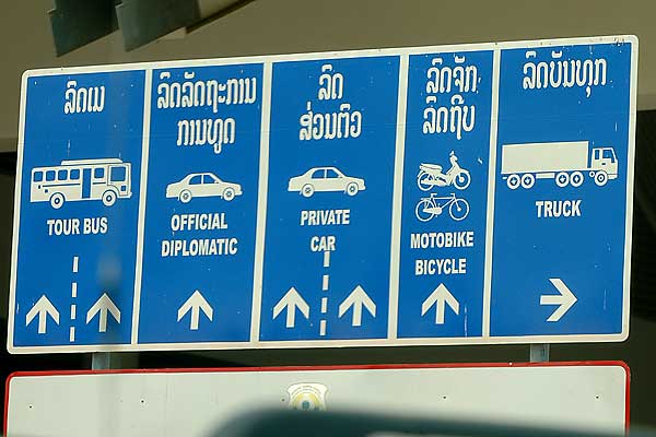 ข้ามมาถึงด่่านฝั่งลาวแล้วครับสังเกตุจากป้ายดูได้...