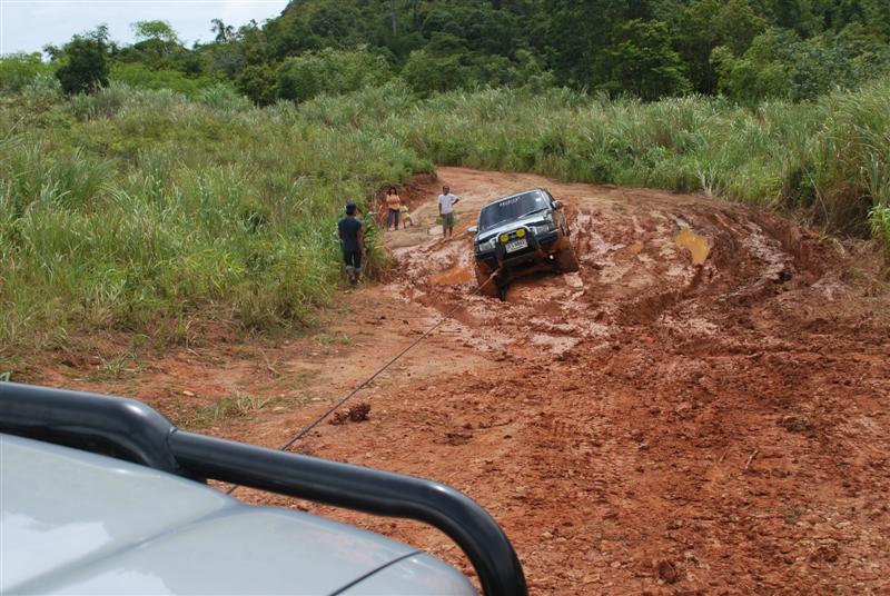 และแล้ว Shot ต่อไปจะเป็น shot ที่ทุกคนที่ไดเห็นในวันนั้นจะจดจำไปอีกนาน หลังจากดึงรถน้าเหน่งขึ้นเสร็จ ก้อถึงทีน้าตะวันบ้าง น้าตะวันขึ้นไปซักพักนึง ได้ยินเสียงเครื่องยนต์ดังขึ้น แล้วน้าตะวันก้อพุ่งมาด้วยความเร็มพร้อมกับเปิด Line ใหม่ใส่มาเต็มที่กระโจนลงบ่อโคลน เหมือนกับ เสือกระโดดตระครุบเหยื่อ ทั้งที่ช่วงล่างเดิม ยางเดิม ไม่น่าเชื่อจะผ่านบ่อโคลนมาได้ รถของน้าตะวันเกือบพลิก แล้วก้อผ่านมาได้ แบบทุกคนรุ้นระทึกเลยทีเดียว