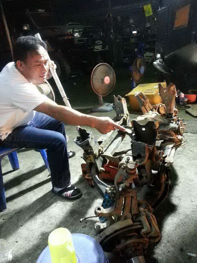 เจ้าของรถก็จัดการนำคานลงมาจากท้ายกระบะแล้วก็ทำการเลาะๆๆๆๆๆ