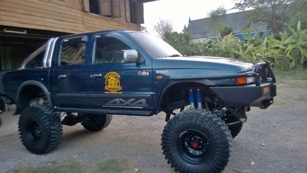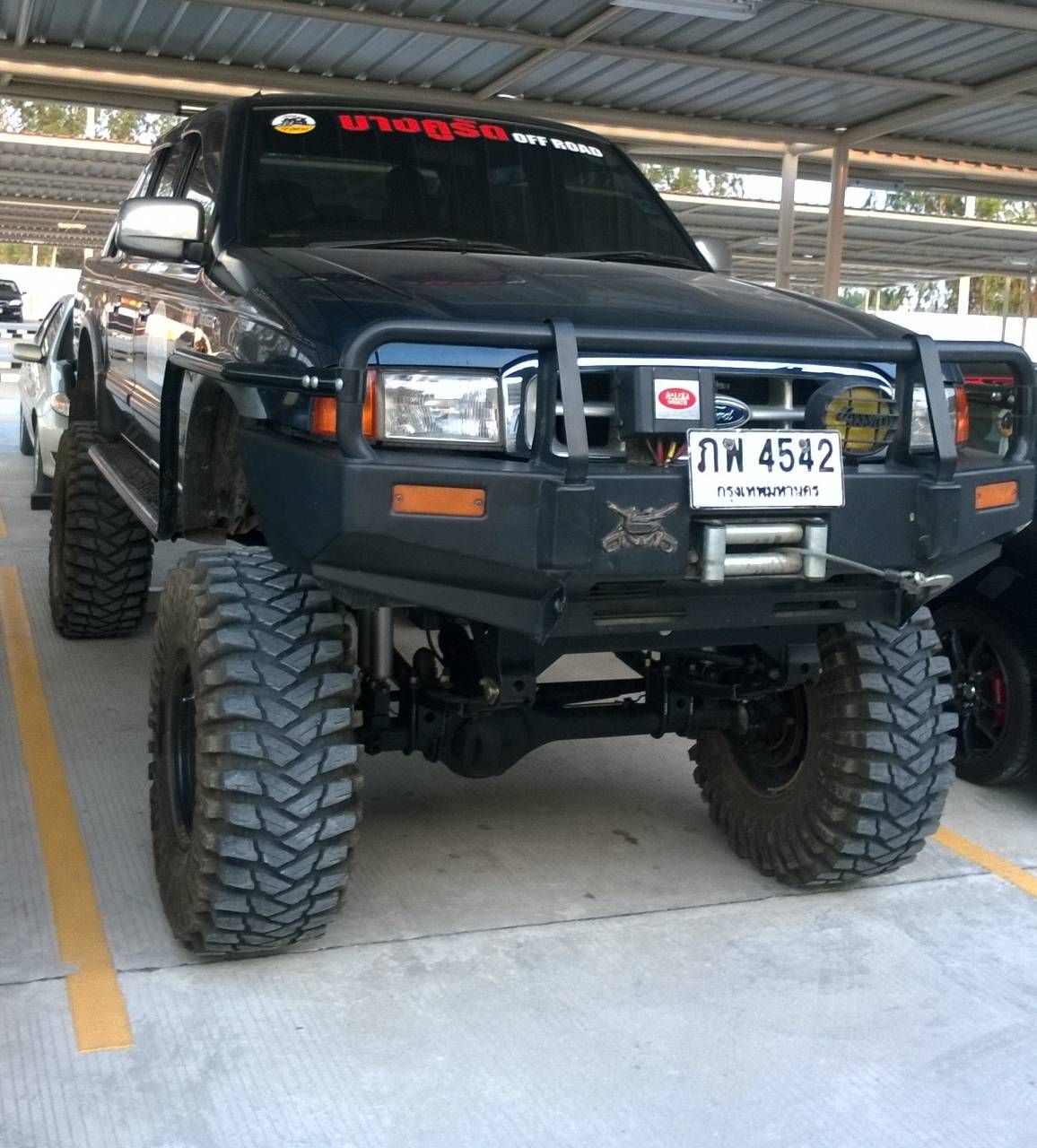 สรุปโดยรวมสมรรถนะออกมาแล้วเจ้าของรถถูกใจมาก ทั้งสวยและนิ่ง รายการที่ใส่เข้าไป คานหน้า78 หลังเซิ้ฟ เฟือง 8.39 เต็ดหลัง แหนบหน้าโปคอม แหนบหลังเดิม โช้คโปรเฟนเดอร์ 8ต้น กันสะบัดอีก1 ตัว เปลี่ยนกะปุกพวงมาลัยเป็นเซิฟ โอบรัดด้วยแม็กซีส 37 นิ้วพร้อมกะทะ10นิ้ว เท่านี้ก็สดใสแล้วครับ จากผลงานของช่างตู๋ เจ้าสำนักบางคูรัดอ้อฟโร้ด ซอยวัดลาดปลาดุกคร้าบผม และรอดูผลงานคันต่อไปฟรอนเทียร์คานหน้าจี๊พ คอยสปริง
