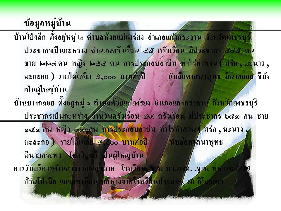 พอดีผมมีโครงการจะไปหาสถานที่เพื่อบริจาคสิ่งของ รวมทั้งอุปกรณ์ต่างๆ แถวโรงเรียน ตชด. แต่เท่าที่สืบหา ก็คงจะเป็นแถวโป่งลึก แก่งกระจานครับ เป็นเส้นทาง อ้อฟโร้ดนิดๆ ต้องข้ามลำน้ำเล็กๆ6ลำน้ำครับ ใครอยากไปด้วยเชิญนะครับ