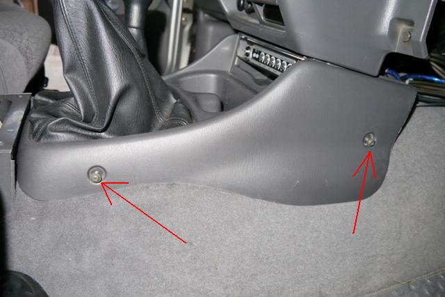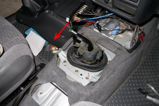 ลงมือเลยครับ ถอดที่ครอบคันเกียร์ออกก่อน คลายสกรู ตามลูกศรแดง ออกให้หมด