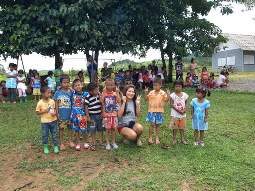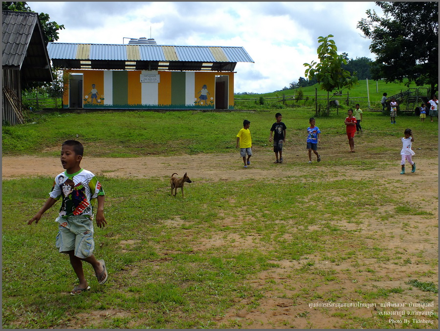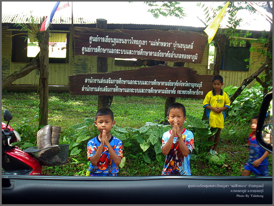 เด็กๆนักเรียนมารอต้อนรับพวกเรา ยกมือไหว้สวัสดีรถทุกคันที่มาเยี่ยมเยียนพวกเขา เขาบอกว่าคุณครูสอนไว้
