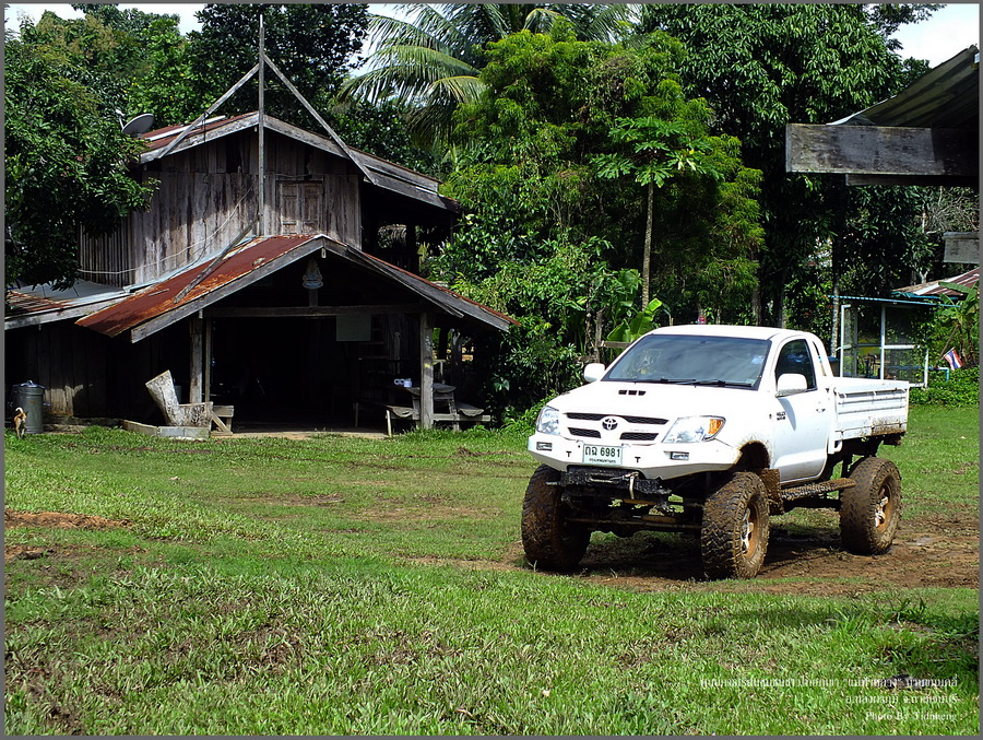 ผมขับอยู่ในลำดับท้ายๆของขบวน พอเลี้ยวเข้ามาในโรงเรียนก็พบรถของน้าหนุ่ยวีโก้กำลังปั่นล้อฟรีเพื่อจะขึ้นเนินดินต่างระดับเพียง50-60ซม. สนามหญ้ามันลื่นมากขับสองไปไม่ได้เลย