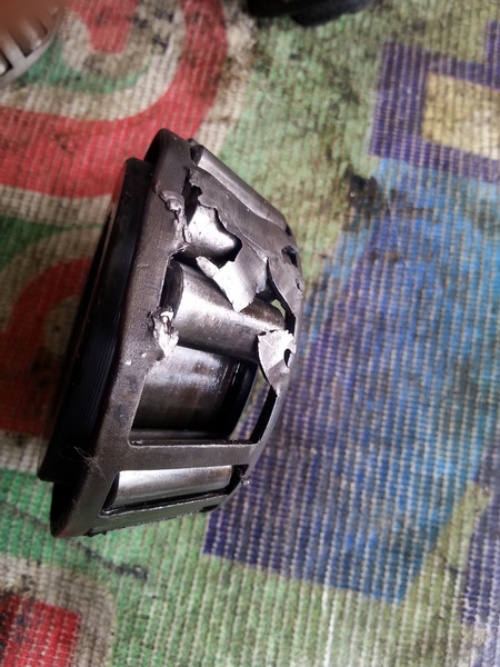 นี่เลยครับ...เฟืองท้ายแตก น้ำมันเฟืองท้ายก็ไหลทิ้งหมดเป็นเหตุให้...ลูกปืนเฟืองท้ายแตก นี่ยังโชคดีนะที่ไม่พังไปทั้งบายสีและเดือยหมู