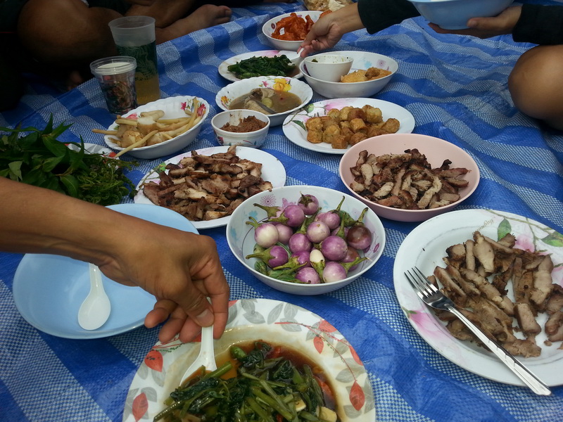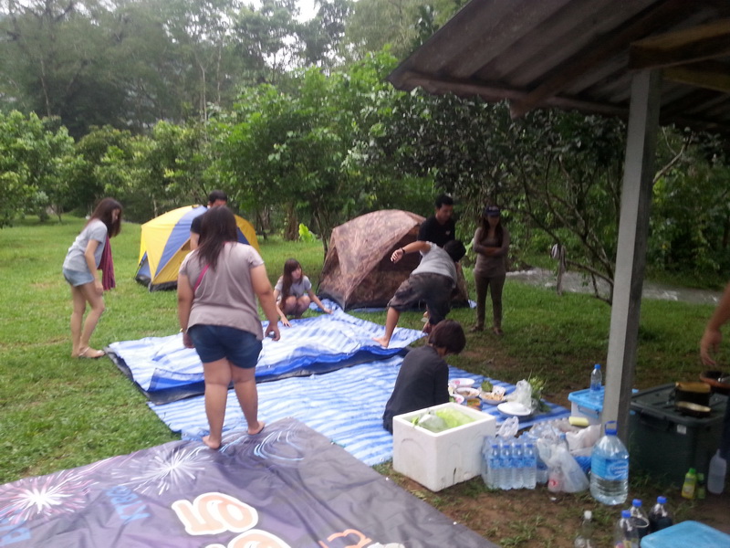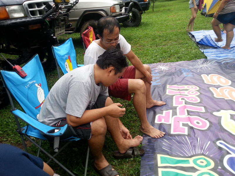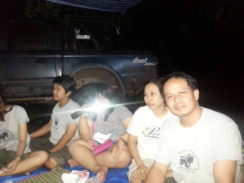 เจอตัวละ น้าจานทอง(เสื้อม่วง) ทำให้พวกเราเป็นห่วง ต้องรีบมาจัดแจงปูผ้าใบไว้รอรับเพื่อนๆ