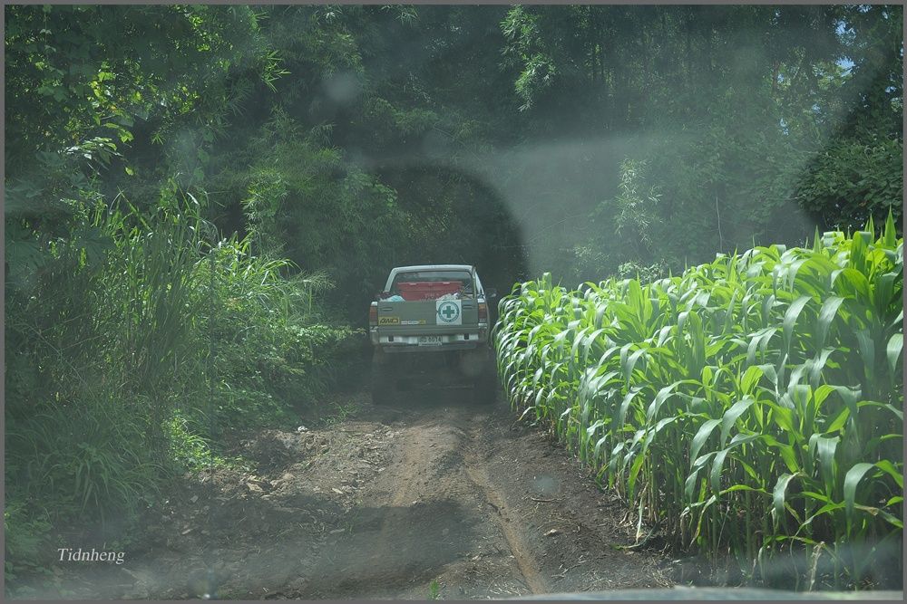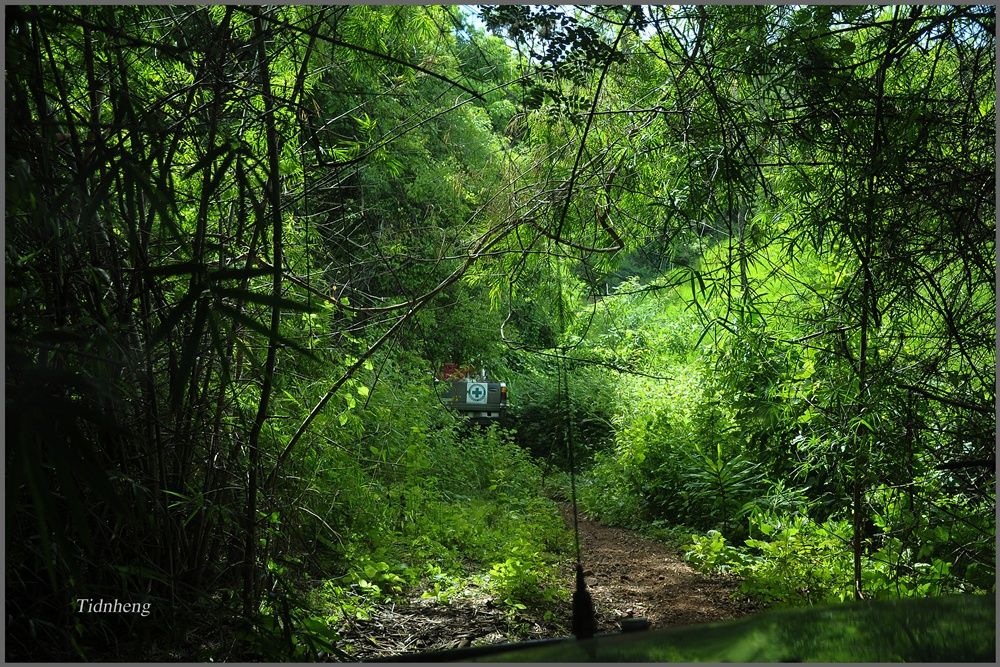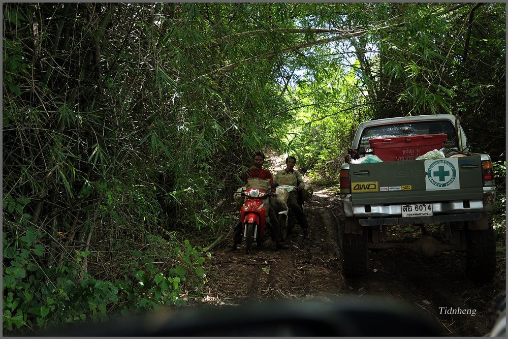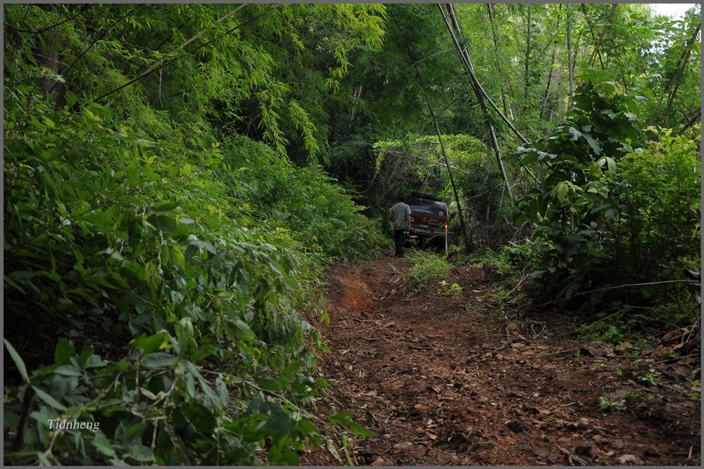 คนทำงานในวัดบอกว่าหน้าวัดมีทางขึ้นเขา ปลายทางมีลานกว้างและลำธารพวกเราก็สนใจอยากจะไปเที่ยว แต่เส้นทางค่อนข้างลำบากกว่าตอนขึ้นมาอีก ชาวบ้านส่วนใหญ่ใช้มอเตอร์ไซด์ดัดแปลงขึ้นไปเท่านั้น เราก็เลยต้องคัดเฉพาะรถที่คิดว่าผ่านได้แน่ๆขึ้นไปเท่านั้น