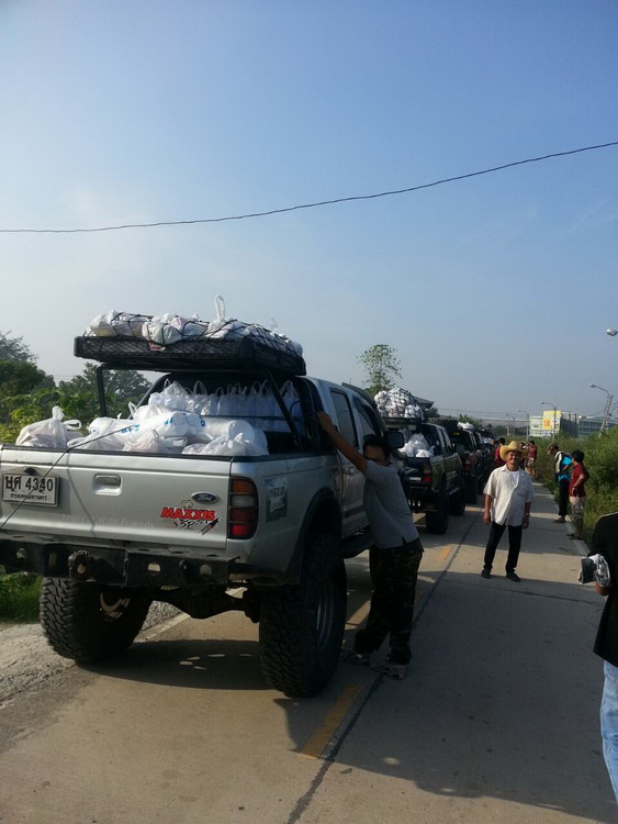 เตรียมของกันที่จุดนัดพบ วัดลำโพ อ.บางบัวทอง จ.นนทบุรี