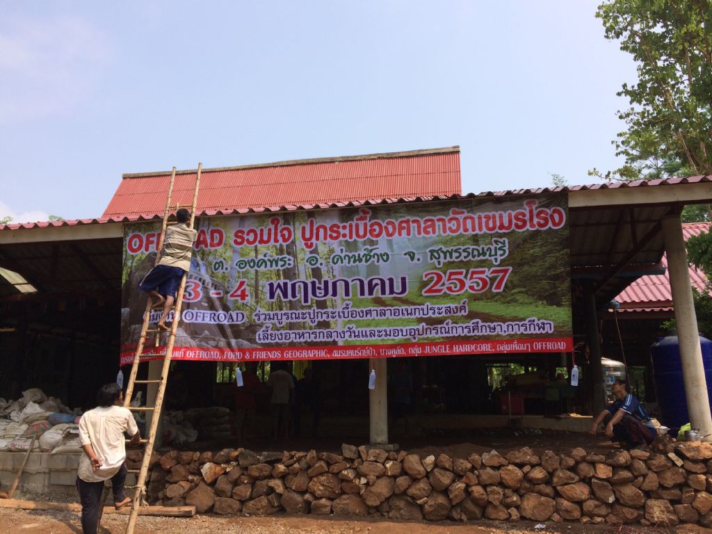ทางกลุ่มฯจึงได้มีการปรึกษาหารือกันได้ข้อสรุปว่า ทางกลุ่มจะดำเนินการปูกระเบื้องให้กับศาลาของวัด โดยเป็นการร่วมมือกันปูกระเบื้องกันเองจากเพื่อนๆที่จะร่วมเดินทางไปด้วยกัน