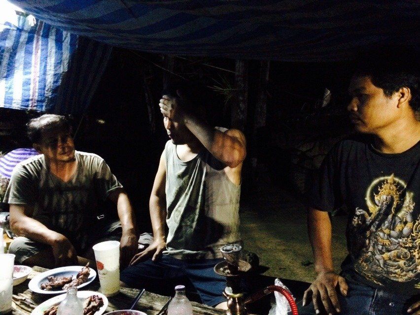 หลังจากนั้นก็นั่งสังสรรค์กันไปเรื่อยๆ สักพักฝนเทลงมาละทีนี้