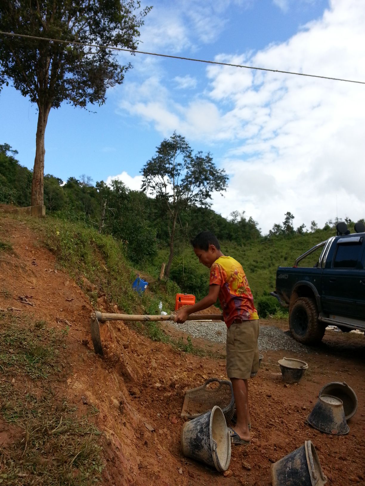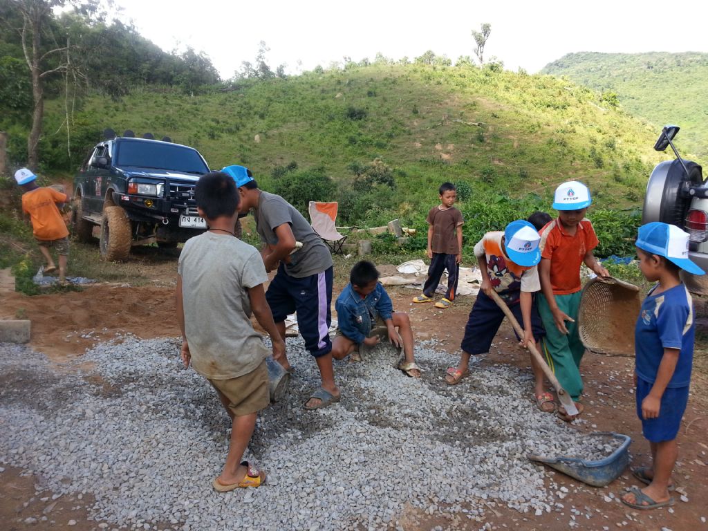 เด็กๆมาช่วยขนหิน ทราย เพื่อเทคอนกรีต