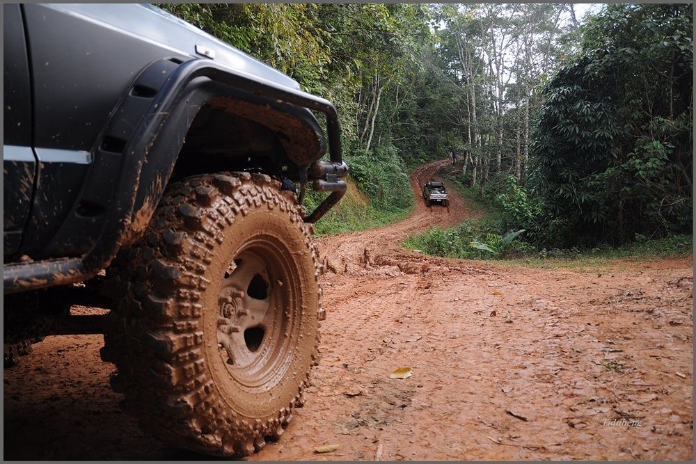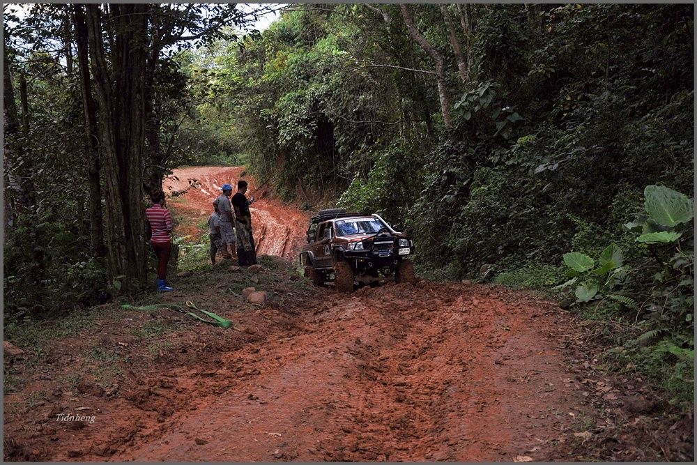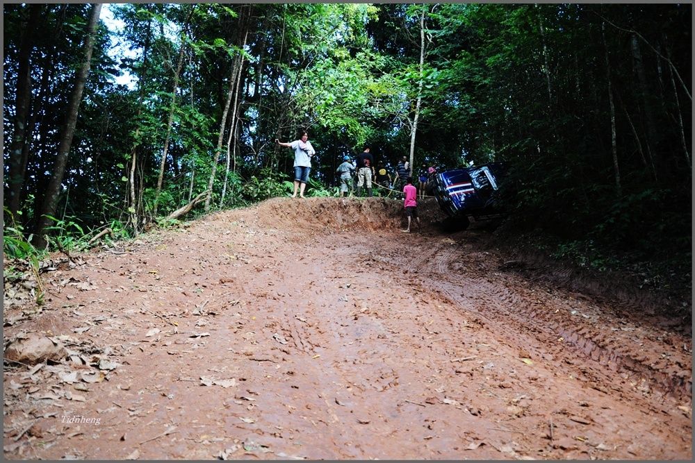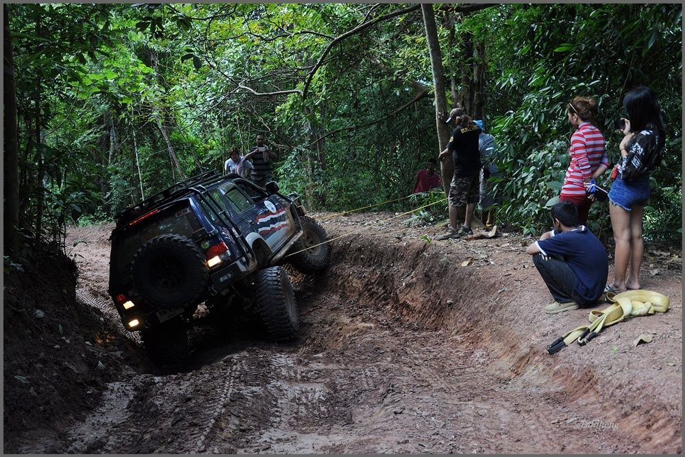 ขบวนมาถึงร่องมหาสนุก ตอนมาเป็นขาลง ตอนกลับเป็นขาขึ้นต้องผ่านก้อนหินผิวมันๆลื่นใต้โคลน ยางตะขาบอย่างรถผมยังต้องถอยส่งใหม่ 3 ครั้งกว่าจะผ่านไปได้