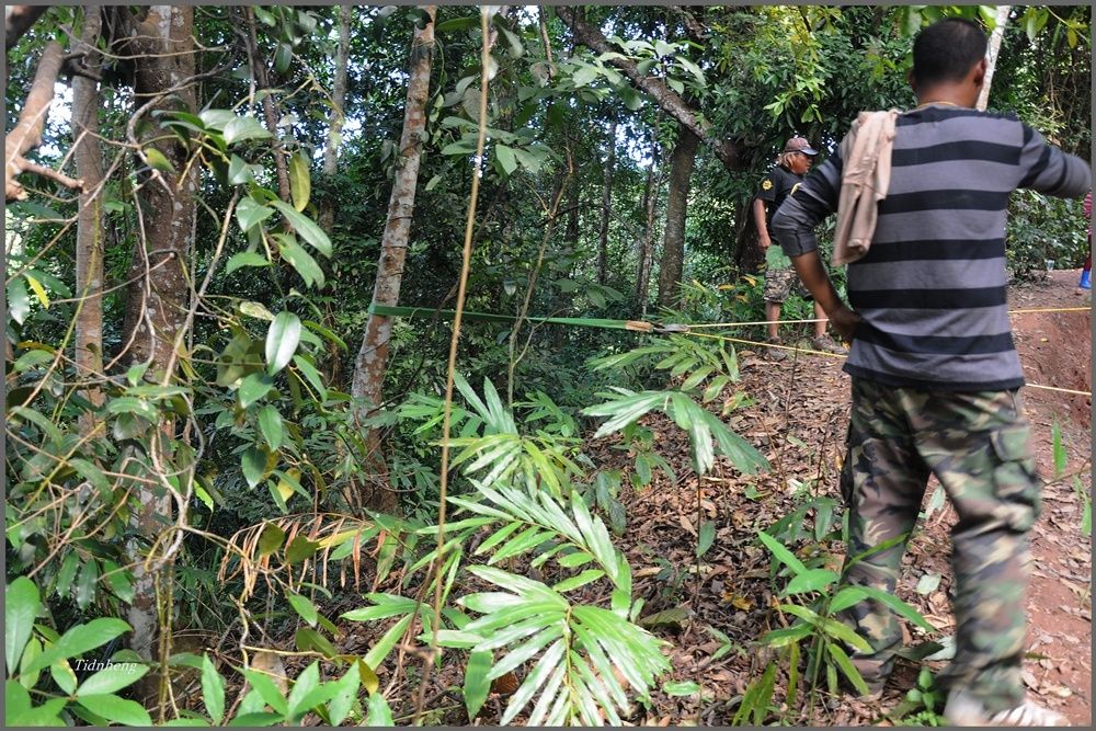 แนวทางการกู้รถครับ ใช้วินช์หน้ารถตัวเองร้อยสลิงผ่านสแนปบล๊อก โยงกับต้นไม้เกี่ยวท้ายรถเป็นรูปสามเหลี่ยม