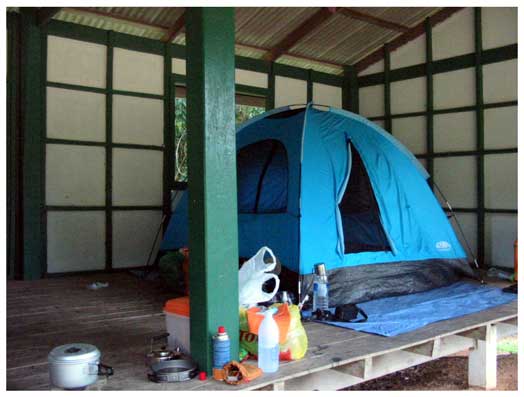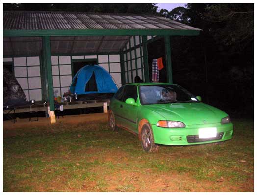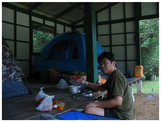 เนื่องจากฝนตกตลอดทำให้ไม่สะดวก ที่จะกางเต็นท์กลางแจ้ง เลยไปอาศัยศาลา ที่เห็นเป็นที่หลบฝน