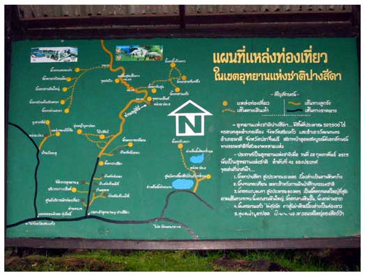 นี่ครับแผนที่แสดงเส้นทางท่องเที่ยว จริงๆแล้วมีน้ำตกให้เที่ยวหลายแห่ง แต่ต้องออกแรงหน่อยครับ ดูๆแล้วคงต้องลงบัญชีไว้ แล้วค่อยกลับมาแบกเป้เข้าป่าอีกดีกว่า ตอนนี้เอาแค่นอนดูดาว เท้าติดดินไปก่อน