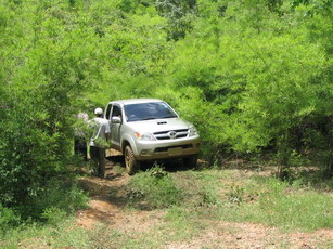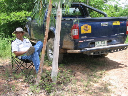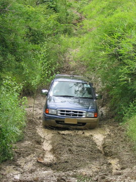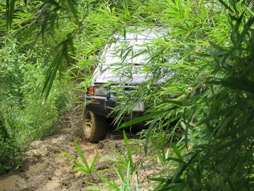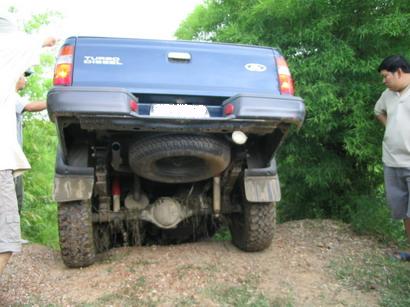 ผ่านจากภูชี้ฟ้า ลงมาก็เจอเนินเอียงมีก้อนหินใหญ่ไว้ให้พิงเล่นได้ แต่รถคงบุบนะคับ ก่อนที่จะกระโจนลงบ่อโคลน แล้วไต่ขึ้นเนินชันอีกหน่อยนึง