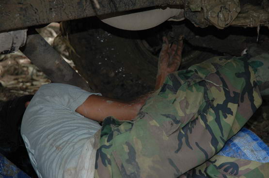 ยังมีแถมครับ มาถึงหน้าไทรโยค เพื่อนเรากลัวไม่ครบ "การซ่อมรถขั้นพื้นฐาน ของออฟโรด" เลยแกล้งทำลูกปืนหน้าแตกเล่นซะงั้น