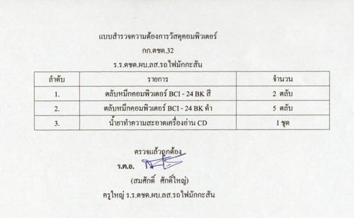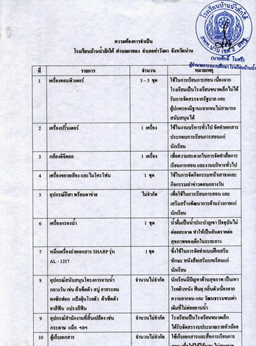 สิ่งของและอุปกรณืการเรียน ที่ทางโรงเรียนบ้านน้ำลัก ต้องการครับ