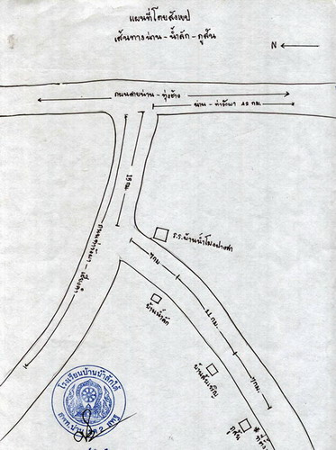 แผนที่เส้นทางคร่าวๆ ที่ได้รับมาจากทางโรงเรียนบ้านน้ำลักใต้