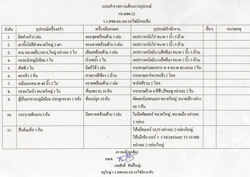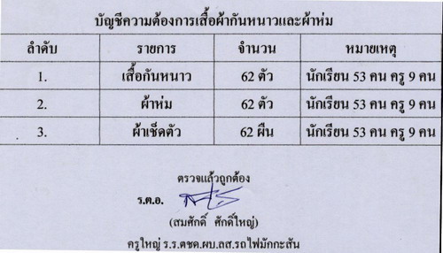 รายการสิ่งของ ที่ทางโรงเรียน ตชด.ผบ.ลส.มักกะสัน บ้านห้วยเลา อ.สองแคว จ.น่าน ต้องการ