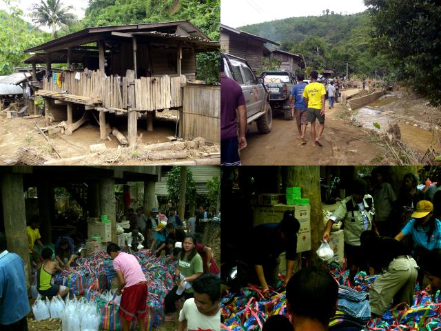 พวกเรามากันน้อย ก็เลยต้องขอแรงชาวบ้านน้ำกลาย มาช่วยกันขน ตรวจเช็ค และมอบให้ตัวแทนครอบครัวผู้สูญเสียชีวิตและบ้านเรือนสูญหายไปกับสายน้ำ