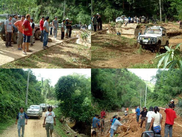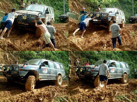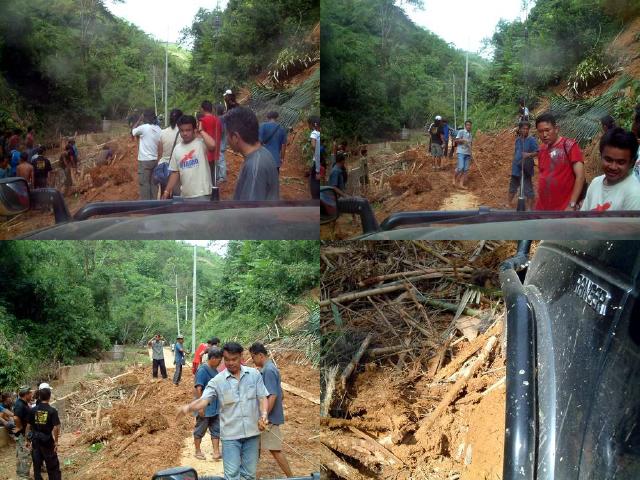 หลังจากกรุยดินเปิดทางได้แล้ว ดึงเอาขอนไม้ รากไม้ ออกไปแล้ว น้าพี ก็เลยพยายามช่วยเปิดทางให้รถผ่านไปได้ แต่ก็ต้องเป๋ ไปเหมือนกัลล์