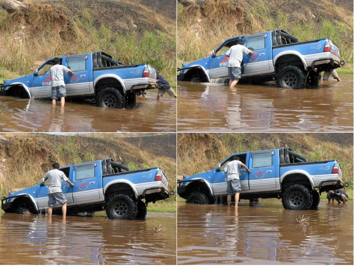 ตกล่องน้ำลึกไปนิด เลยต้องรีบช่วยกัน Winch ขึ้นมา ใช้ Winch 2 ตัว ถึงจะดึงขึ้นได้