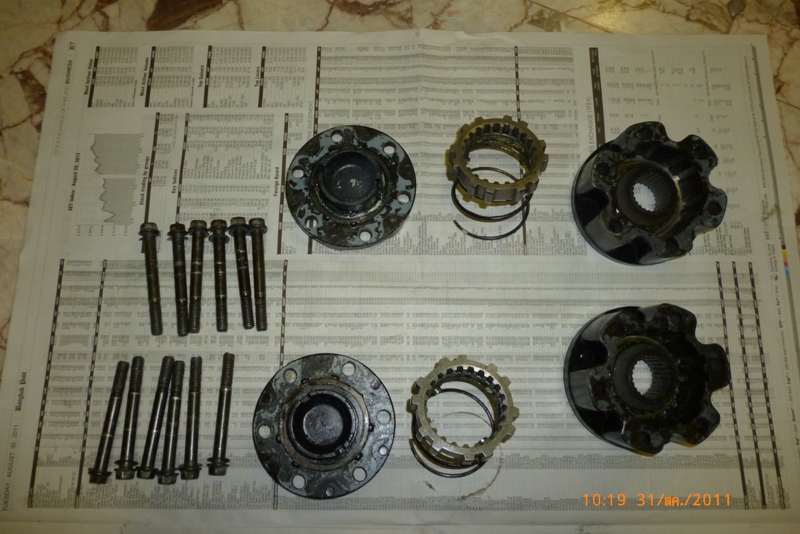 6. ผมทำความสะอาด และประกอบชิ้นส่วนคืนตำแหน่งเดิม และนำทั้งสองตัวมาทดสอบบิดไปที่ตำแหน่ง"lock" แล้วทดลองหมุนเฟือง ปรากฎว่าเฟืองจับแน่นหมุนไม่ได้ = OK...ถูกต้อง แล้วทดลองบิดคืนมาที่ตำแหน่ง"free" ปรากฏว่าเฟืองหมุนได้ฟรี = OK...ถูกต้อง