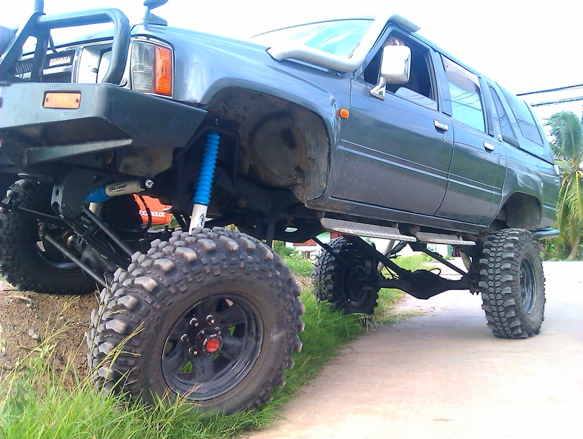สวยงามบาดจิตบาดใจทีเดียวเชียวแหละ ชอบอีตรงที่ตัวบอดี้ของรถมันลอยอยู่เหนือยางนี่แหละมันได้อารมณบิ๊กฟูตของแท้เลย อย่างนี้แนะนำน้องเอ้ให้เปลี่ยนใส่ยางซัก 40 นิ้วไปเลย เดี๋ยวจะพาลงหนังสือ 4x4 ขายหัวเราะ เอ๊ย...ไม่ใช่ ต้อง 4x4 มหาสนุกต่างหาก