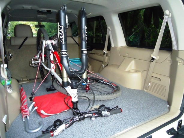 ตามสะดวกเลยครับแบบไหนก็ได้ ถ้าเป็นรถเก๋งก็มักจะมีแร็คห้อยกระโปรงท้ายหรือแร็คหลังคา ปิคอัพก็ทำขาแร็คยึดขอบกระบะ ส่วนผมรถสูงมีหลังคาไม่อยากติดแร็คบนหลังคาเกรงว่าจะสูงเกินเดี๋ยวจะไปเกี่ยวต้นไม้,สายไฟ ก็เลยใช้วิธีถอดล้อหน้าเอาขาโช๊ควางกับเหล็กฉากแล้วกเอาเชือกมัดกับหูแม็กลายเนอร์แค่นั้น ไปถึงไหนถึงกันขึ้นเขาลงห้วยก็ไม่เป็นไรครับ