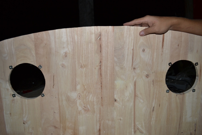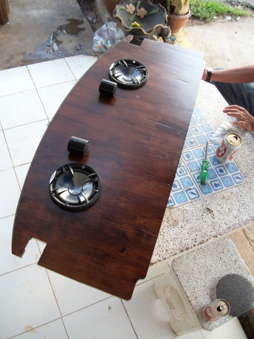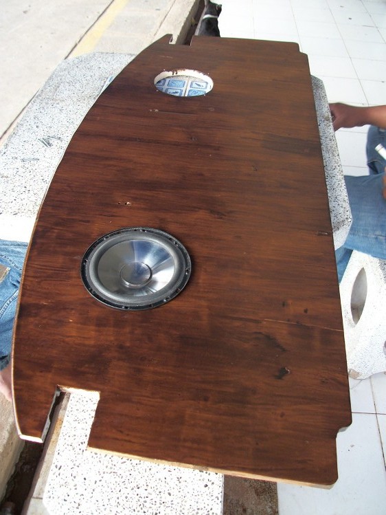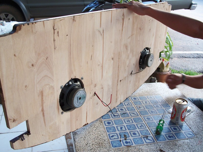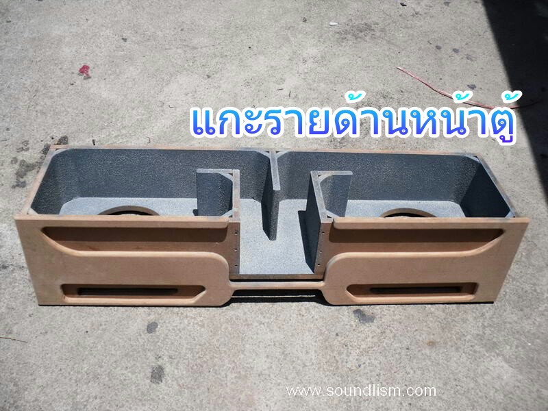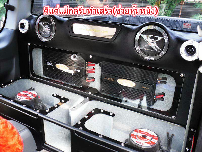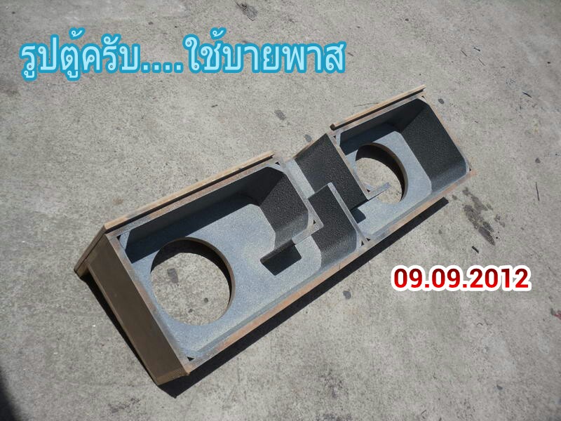 ใส่เข้าไปในรถก็เป็นแบบนี้ครับ แล้วอย่าลืมว่าเราต้องเข้าไปนอนในกระโปรงท้ายเพื่อยึดbaffle(แผงลำโพง)ให้ติดกับโครงรถให้แน่นที่สุด เพราะเมื่อลำโพงดีดตัวมันจะได้ไม่กระพือ แล้วเกิดเสียงรบกวนที่ไม่ต้องการ และแผงbaffleหนาๆก็ได้เปรียบในเรื่องการกระพืออีกด้วย ไม่ใช่ว่าลำโพงเล็กไม่จำเป็นต้องแผงหนานะครับอย่ามองข้าม ลำโพงเล็กแผงbaffleหนาๆยึดแน่นๆ เบสเป็นตัวครับนี่คือศิลป์