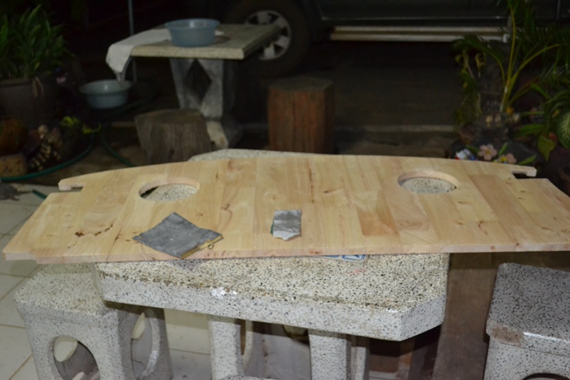 คราวนี้ก็ลงกระดาษทรายด้านหน้าให้ขึ้นลายครับใช้เบอร์ 100ก่อนแล้วก็ขึ้นเงาด้วยเบอร์ 180อย่างเบามือครับ