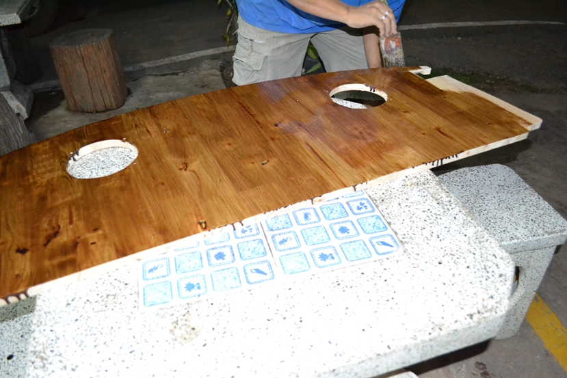 เมื่อขัดแล้วก็มาย้อมสีครับ ด้วยสีย้อมไม้ให้สวยครับ