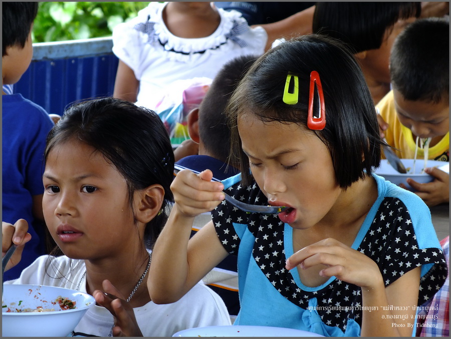 โรงอาหารขนาดกระทัดรัด หลังคาสังกะสี กินข้าวไปปาดเหงื่อไป ได้ลมโชยมาหน่อยก็ช่วยคลายร้อนไปได้บ้าง