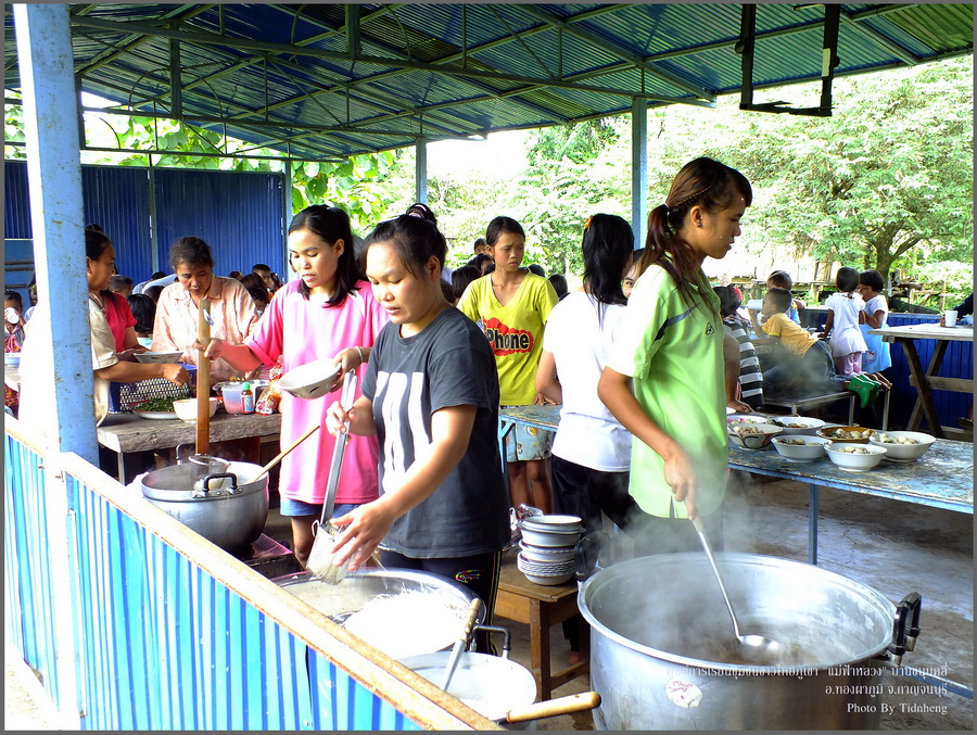 รุ่นพี่ ม.ปลายก็ช่วยกันปรุงลวกใส่ชาม