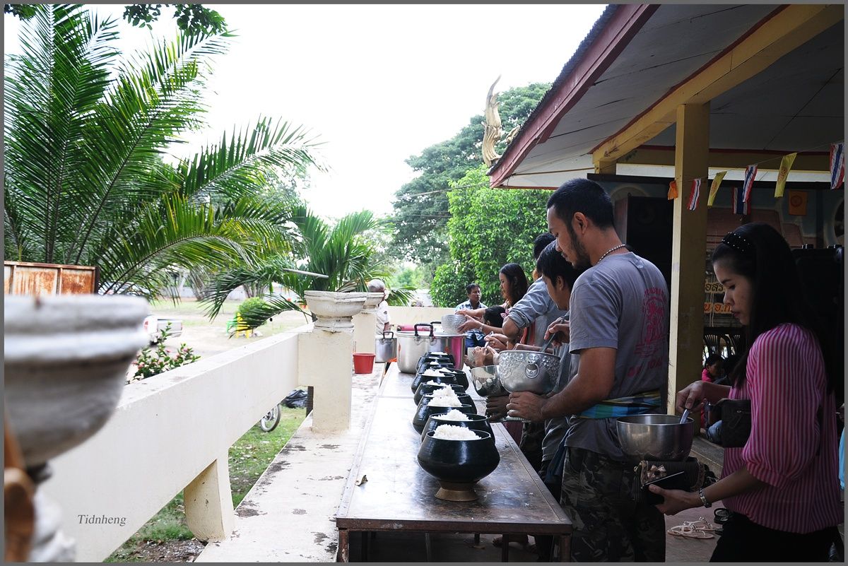 ผมเกิดอาการตาลายก็เลยเดินไปที่โรงครัวก่อนระหว่างที่หลวงพ่อกำลังเทศน์ ก็ได้เจอกับหนุ่มนั่งหล่อเรียงแถว น้ามะเดี่ยวตักข้าวให้ผมจานนึงรีบโกยเข้าปาก