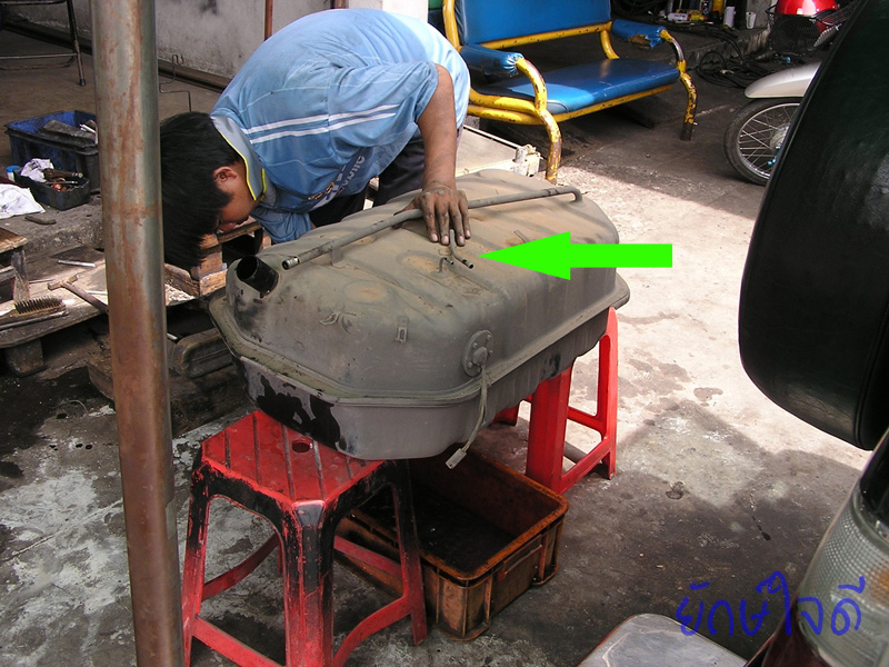 ออกมาแล้วก็ทำการเป่าเอาชุดท่อดูดน้ำมันออกมา แล้วก็เป็นอย่างที่คิดไว้จริงๆคือตัวท่อดูดน้ำมันนั่นมันเป็นตามด ทำให้เวลาน้ำมันใกล้หมดมันดูดลมเข้าไปด้วย เลยเกิดอาการสะอึกจนดับ และอาการจะเกิดต่อเมื่อรถต้องอยู่ในมุมเงยซะด้วย วิ่งปกติไม่เป็นไร จัดการเชื่อมไล้ตามดให้หายไป ประกอบกลับเข้าไปใหม่ ใช้มาจนถึงทุกวันนี้ไม่เคยเจออาการนี้อีกเลยครับ