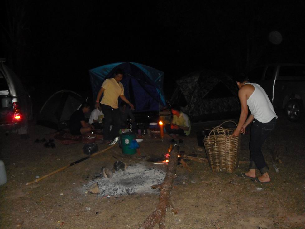 ไปถึงค่ำไปหน่อย รีบๆ แยกย้ายกันทำหน้าที่ กางเต็นท์ ทำกับข้าว หาฟืน เร็วเดี๋ยวหิวก่อน
