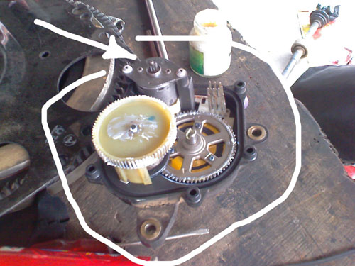 มอเตอร์ทรานสเฟอร์ท้ายเกียร์......ท่านใดเสีย.........ถอดออกดูว่ามีน้ำ...โคลนเข้าไปหรือเปล่า หากโดนสนิมกัดจนมอเตอร์กร่อน เฟืองไม่หมุน ต้องถอดมอเตอร์ไปให้ร้านไดนาโมทำให้ .......ล้างขัดทุกชิ้นส่วน ใส่จารบี ...อย่าลืมทำสัญลักษณ์ก่อนถอด
