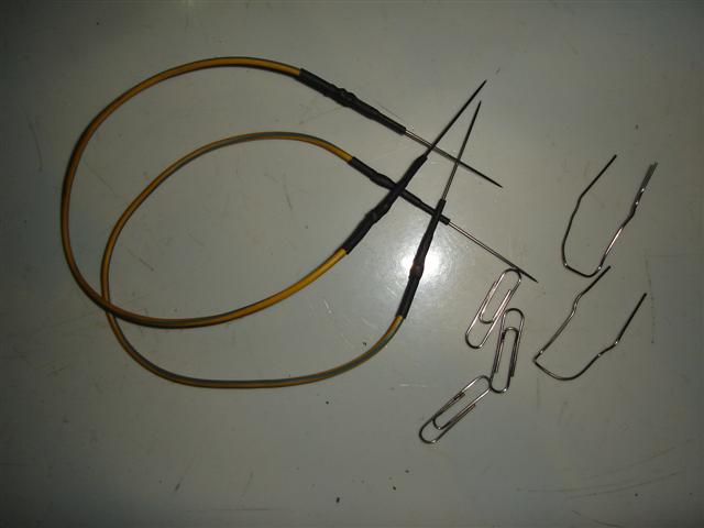 อุปกรณ์ที่ใช้ คลิปหนีบกระดาษดัดเป็นตัวU 2อัน หรืออย่างมาตรฐานก็เอาเหล็กแหลมหรือเข็มมาบัดกรีกับสายไฟทั้ง2ด้าน แล้วหุ้มด้วยท่อหด